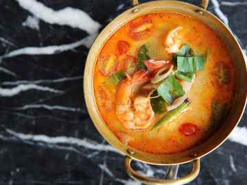 Choice of Chicken or Shrimp. A spicy and sour soup with lemongrass, Kaffir lime leave, mushroom, chili and lime juice